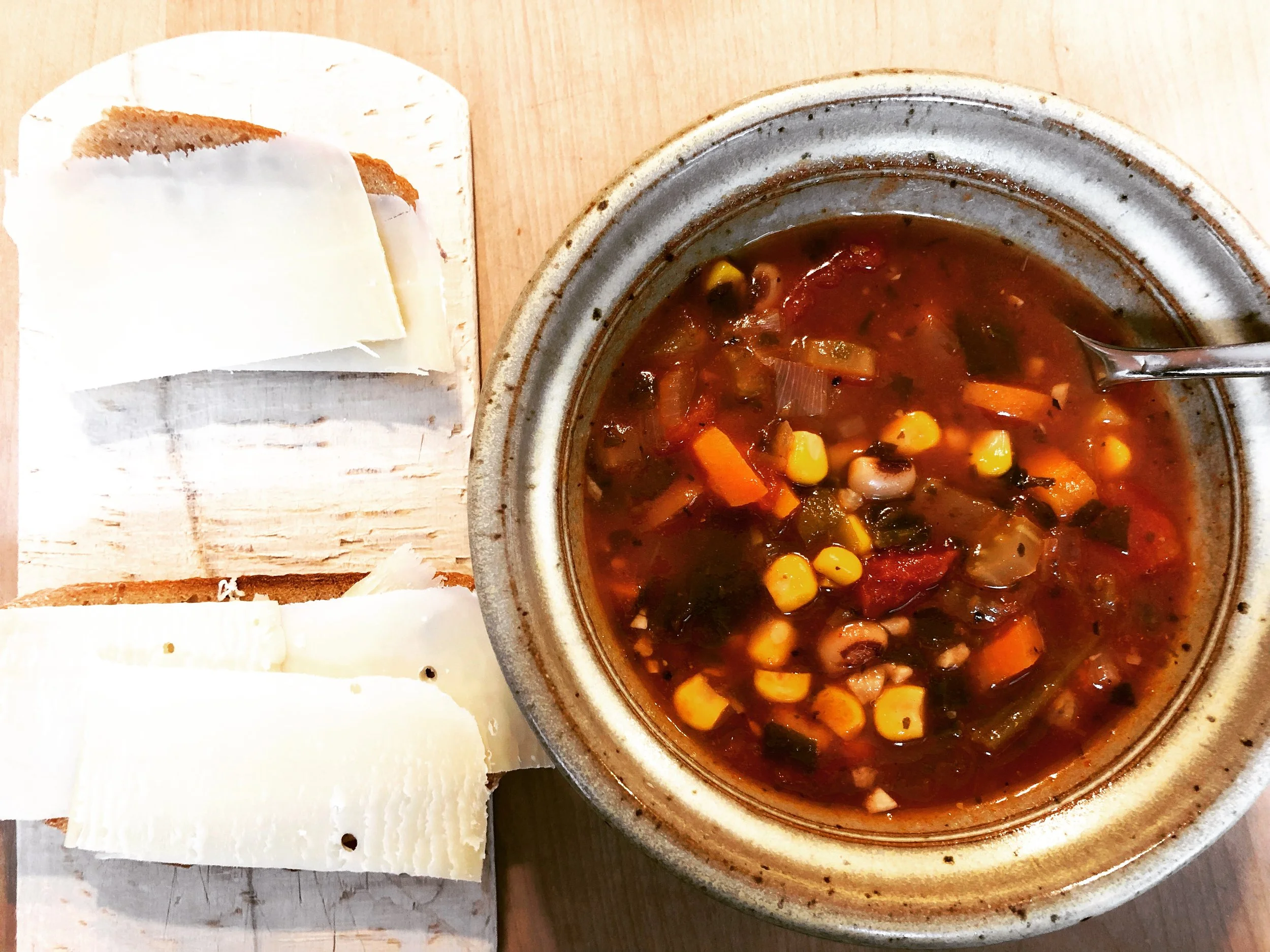 It was around Halloween. And it was a damp and chilly night. Friends and neighbors gathered at dusk in our backyard for the burial of a dead dog. Jim dug the hole; Ben gave a eulogy; Pete brought a gravestone. The small gathering joined voices in song as Benjamin and Josie, the two youngsters in the group carried the dog to its final resting place. We each took turns throwing clumps of dirt into the hole and one last shovelful finished the job. There were a few claps on the back, a few hugs and then we all trouped inside to a large pot of piping hot chili, tortilla chips and salsa and warm cider. Sitting around the table with steaming bowls of soup, the story of the dog was retold.